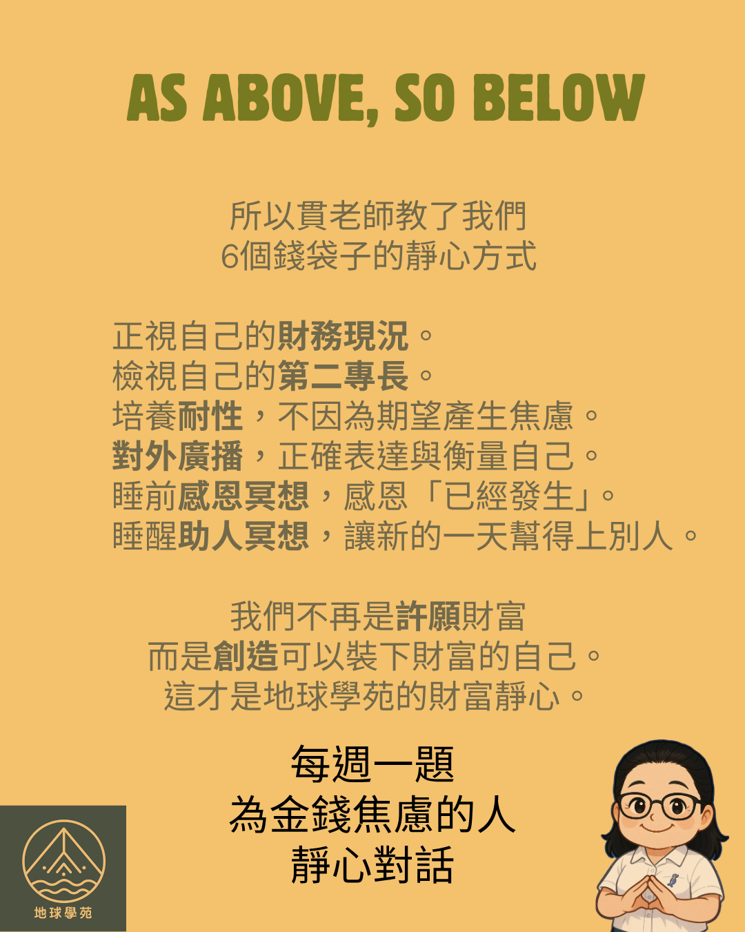 #地球學苑  #貫老師靜心  #每週靜心 #財富靜心 #重新編程