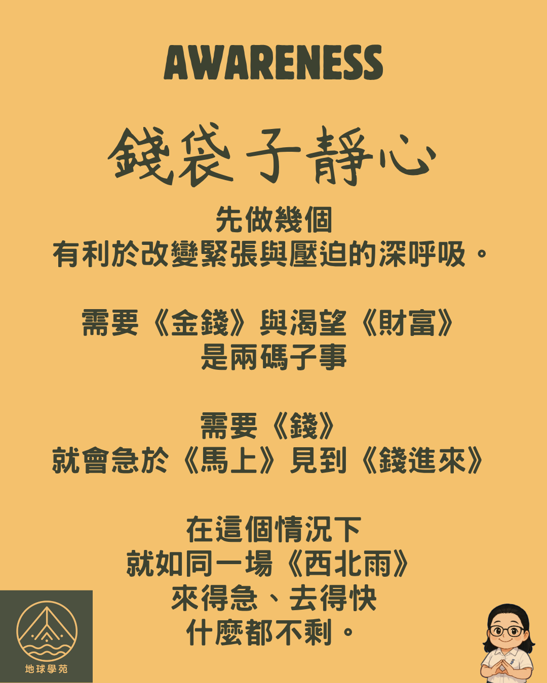 貫老師的話: 💰 《錢袋子靜心》 💰